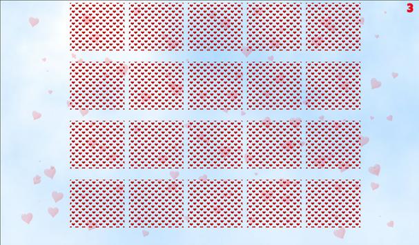 Player is required to tap the square buttons and need to memorize what is behind it in order to match its couple. Players are required to complete a level in minimum finger taps to match all love items.