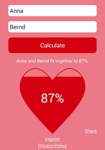 *Of course, no algorithm in the world can calculate how well two people really fit together. The app also does not calculate the real value, but is only for entertainment.