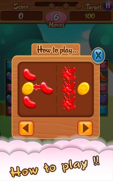 Matches of four or more candies develop unique candies with larger board-clearing abilities. Boards have several goals that must be completed within a fixed number of moves or limited amount of time, such as a certain score or collecting a specific number of a type of candy.