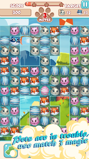 Dive to an exciting and colorful match-3 adventure, visit many amazing places and Pets as many animals as possible. Incredible surrounding views, many adventures and charming, thankful faces of our little friends are waiting for you.