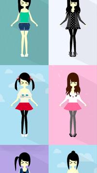 With the original paper doll design, you can flip pieces to change hairstyle, top, coat, skirt, leggings and shoes. And you can flip the pages to switch between styles.