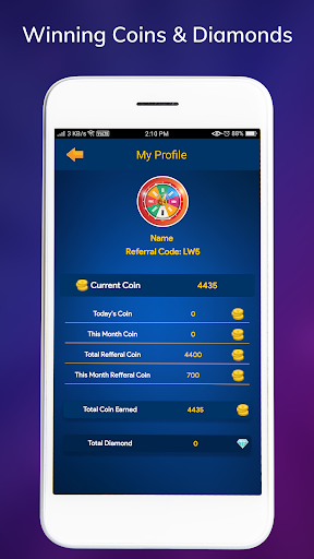 Shows your coin and diamond history that you win while playing wheel and spin game.