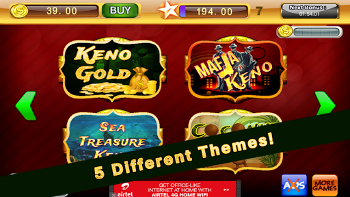 There are several variations of Keno such as 20 Card Keno, 4 Card Keno. This game is a 1 card keno, however with many themes. Being able to pick Keno winning numbers is the highlight the game. You have to be lucky to get the right keno numbers.
