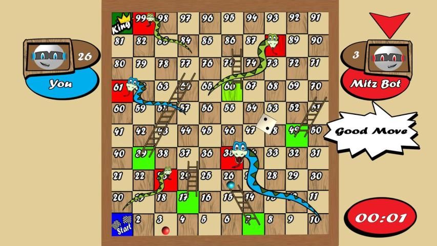 Snake And ladder game is the multiplayer game in which one player which consist OF MITZ BOT while the another player is you. Soon we will launch the new update of this game in which you can invite your friend from Facebook or through email to play this game against you.