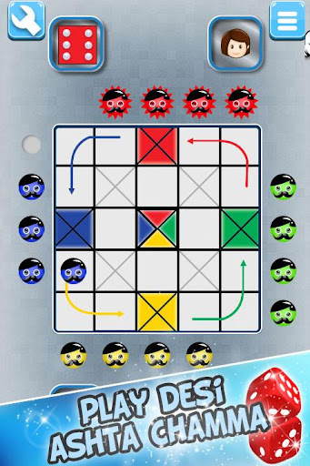 Ashta Chamma or Chowka Bara or Indian Ludo is a four or two player game. Each Player is given four Tokens. This game is controlled by throwingthe Dice.Each player has to roll the Dice one after the other and move the token based on dice value. The Tokens moves in