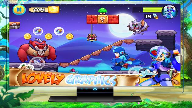 The main project of this game is an amazing entairtement strong robot game with our big hero megamen who want to survive and get his gold treasure back, the only secret to win this game is to be active and fast in your road they are a lot of obstacles in the last levels with different environment and exciting challenges and beautiful weather in each world that you are in, see the next chapiter for more details.