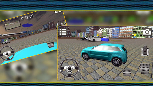 Control your car with an on-screen steering wheel, acceleration and brake pedals. Shift the gear to forward or backward as you need.