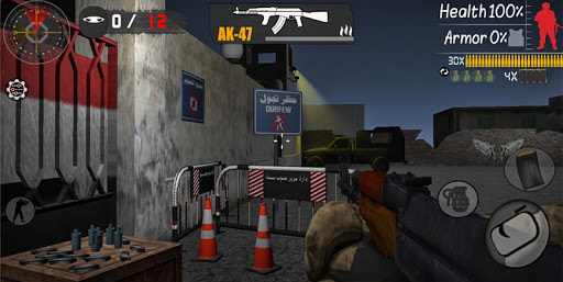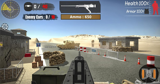 Serving soldiers in North and South Sinai to protect civilians from enemies ... In ambushes, soldiers keep the fixed ambush, and soldiers cannot move from their place but they receive a warning call from the brigade that "enemies will come to fight you and you must defend yourself" and soldiers can see the enemies come from Far away in their own car (Toyota). When the enemies are seen in the car, the soldiers (the player) must resist them to victory, either by hitting the car or the enemies when they get out of the car.