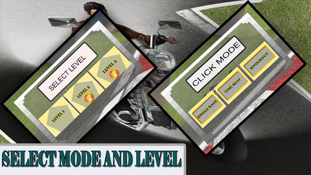 In Knockout championship, you have to compete with three other bikers. In the end of first level last one will be eliminated and remaining will start next level on next track. In the end of second level last one will be eliminated and final round will be started between top two players. The winner of last level will be the champion.press tab on boost for high speed the bike run and then control our and enjo