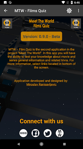 MTW - Films is quiz application, designed for testing your knowledge and learn something new about the World you live in.