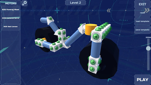 Here you can let your creativity run free and assemble different vehicles and machines. For this you have different components like servo joints and motors at your disposal. Solve the tasks of the different levels with your machines.