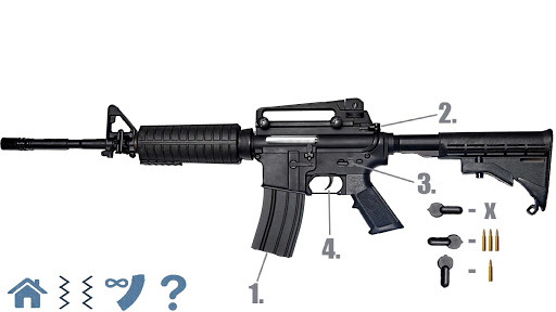 This simple app simulates assault rifle. First load bullets, then use breechblock, chose fire mode and shot.