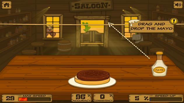 Everybody wants to eat at your place, even cowboys love a good burger but can you handle their big appetites . They know that you're mad and they like it! You serve the burgers by throwing them. You can adjust the maximum speed and add sauce to make the burger go further. You should try and collect some power ups while the burger is still in the air.