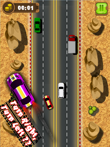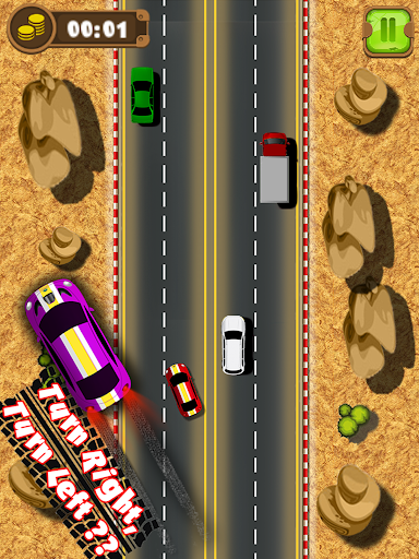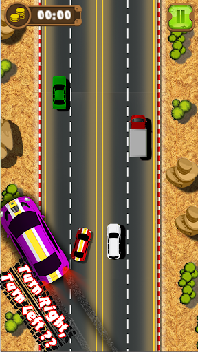 - Tap to sway and change car direction and not hit any other car.