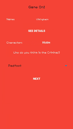 This game is a role play game, where everyone has a part to play. The four possible roles are Criminal, Detective, Doctor and Victim. Criminal kills a person, Detective accuses a person, Doctor saves a person and a Victim exiles a person. (Tutorials included in the game).