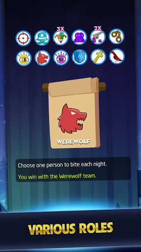 Roleplay into a special character as Seer, medium, Major and find the werewolves before they kill all villagers