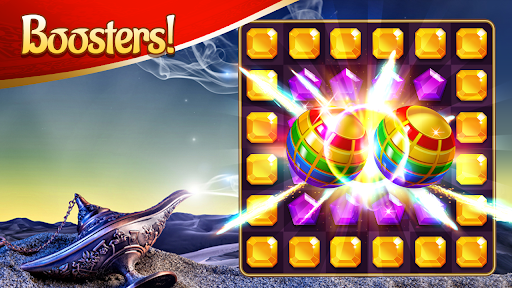 Play magical match 3 puzzles to retrieve gems, jewels and of course the magic golden lamp and have your biggest wishes come true! Embark on an adventure you will never forget in search of genies & gems, jewels & gold, fun & entertainment!