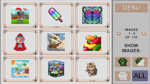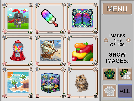 Kids-friendly coloring-in app with no costly subscriptions or ads. Free to try several pictures, then purchase for a modest one-time price to unlock all images as well as the restart feature.