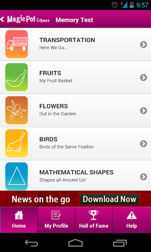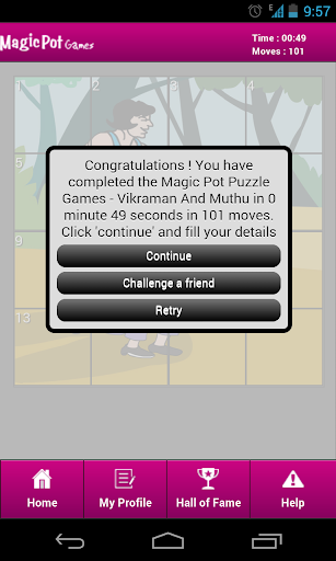 You can build your profile and submit scores at the end of each game so that you can invite others to challenge you. The best scores will always remain updated in Magic Pot Games' 'Hall of fame' wall.
