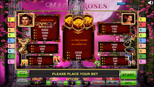 This beautiful slot will bring you to the new world of magic. Magic Roses offers great graphics and familiar options to make for a truly classy online game. Wild symbol substitutes for all symbols except scatters. 3, 4 or 5 scatter symbols on the screen trigger 11 free games. It's free and always will be. Enjoy