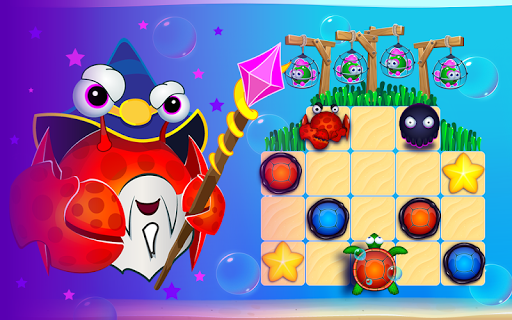 The new puzzle is a colorful underwater world with fish. You need to connect the turtles three in a row and defeat the evil crab. The free 2021 Magic Sea puzzle game can be played without the Internet anywhere.