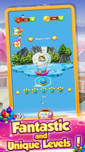 Befriend a witch and travel through magical worlds to free the elves from magic bubble cages. Tap to switch the color of bubbles and release your shot to pop three or more same colored bubbles to free the elves. Visit world’s screen, unlock new worlds and check them out for your next game levels. The game offers different worlds like temple remains, Rainbow world, Volcano, Waterfall, Wonderland, Peace Land, Windmill, Cave, Beach House etc.