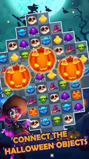 - Match enchanted items from Halloween such as skulls, pumpkins and poisoned apples to clear the board