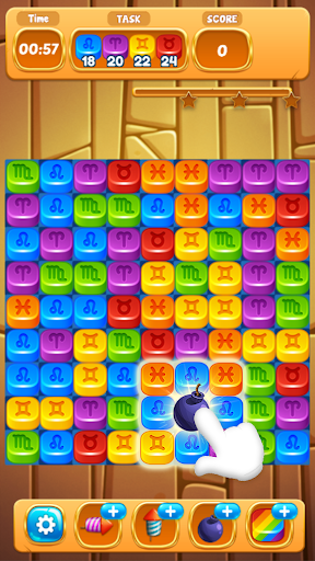 Tap to Blast 8 cubes or more to pop and get a colorful bomber.
