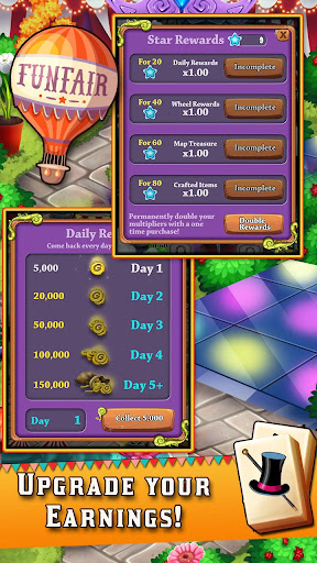 Collect unique crafting tiles on your world tour with the Mahjong Carnival – find all the pieces of the same item and you’ll be able to craft that piece of treasure. Sell your valuable treasures for bags and bags of gold! At the end of each mahjong puzzle, you can open 1-3 extra treasure chests, giving you the chance to get even more useful items to use on your journey!