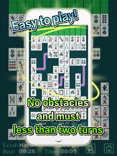 Tap two identical tiles can be paired and removed if the tiles haven't any obstacles between them and removing route must less than two turns.