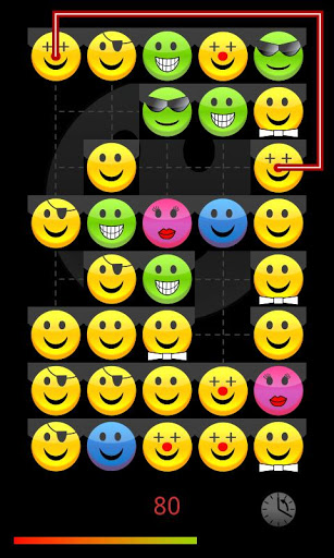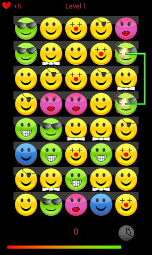 The goal is to make pairs by clicking on two identical icons. It is possible to join together adjacent icons and also the ones that can be connected through the empty background with paths made up of three or fewer segments.