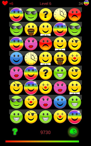 The higher the level, the more difficult to complete the whole board. However, two special icons help complete the level: hint and time wildcards. Each pair of time or hint icons activate the corresponding wildcard, that can be used whenever the player needs them. Only one wildcard of each type can be activated. In other words, wildcards cannot be accumulated.