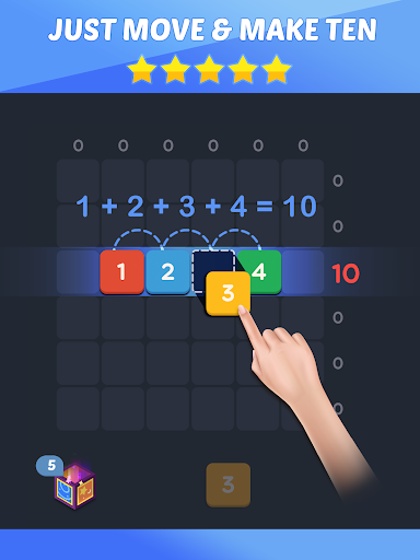 Drag number blocks on the board to get total of 10 in any row or column and then you get scores!