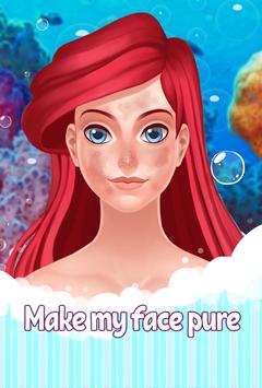 Open your own mermaid makeup beauty salon in games here! Every girl wants to be lovely, and mermaids also love the makeup editor that makes them beauty. They also pass through daily beauty routine in makeup doll games, and it's high time for you to help one of them to get new makeup image. Start her day in the look change app with washing her pretty face and cleanse it from flaws and blemishes to make her skin perfect. Then apply an individual makeover for girls: lipstick harmonizing in color with seaweeds, eyeshadow step by step and mascara to her eyes to amaze even a prince charming! Makeup beauty app will soon be completed with nail salon and dress up.