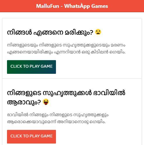 Mallu Fun lets you create and share funny dare games and quizzes on Whats-App. Try our games once and get addicted.