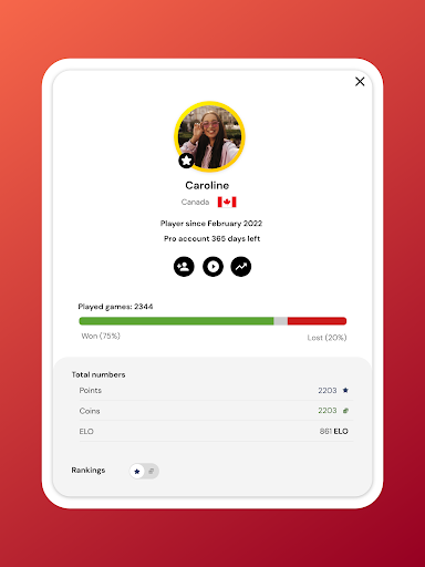 Compare your sills and your game statistics with other players. Get a detailed overview of your skill development.