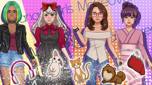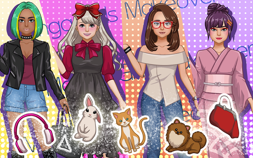 With 250 items, 50 makeup elements and 8 backgrounds available free of charge and without any in-app purchases, you will be able to design a lot of outfits, for various occasions. Chibi princesses, high school schoolgirls in sailor-style uniforms, nerdy chicks in glasses, traditional kimonos and more.