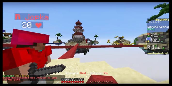 Bed Wars on Minecraft is an excellent adventure survival game with other players both online and offline in the pixel world. All players are divided into teams, each team in turn has its own bed and building. This bedwars server provides the opportunity to play in a pixel world at once to several players. You can download the bed wars game mcpe map in one click in our new application. This bedwars in Minecraft free provides you with the opportunity to build and explore the pixel world without any restrictions.