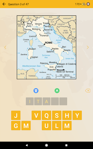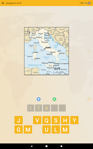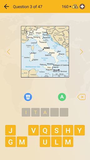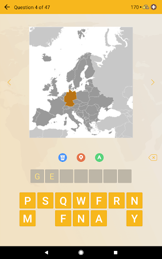 ✓ Do you have any difficulties during the game? Hints will help you! You can open an unknown letter and remove all the extra letters. In a complex mode, you can look the capital of the country.