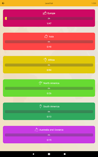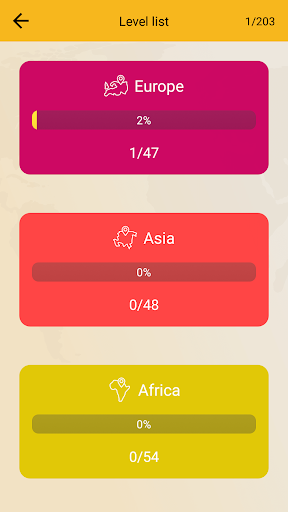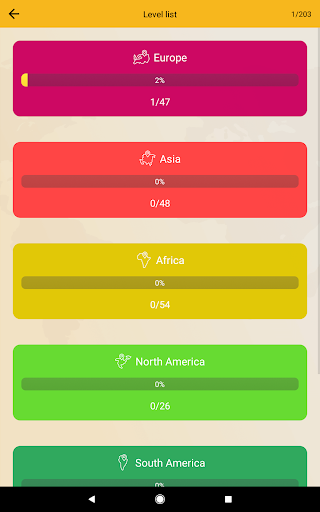 ✓ Statistics during the game. You always can find out how many countries you have guessed on each continent in each game mode and in the whole quiz.