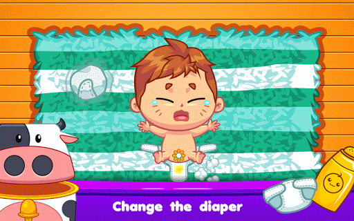 - Nine fun activities: playing, making baby porridge, taking a nap, taking bath, brushing the teeth, cutting nails, drinking a milk, and changing the diaper.