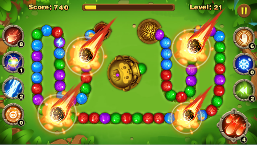 In this marble games,your goal is to clear all the marbles before they reach the end of the path, and meanwhile, achieve Marbles and Combos as many as possible to get the highest score.