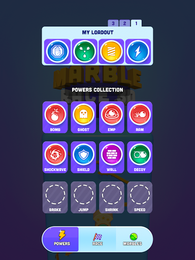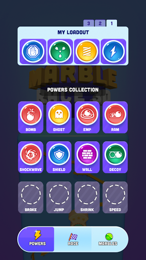 Choose your favorite powers combination, a marble that better represents your style and compete against your opponents