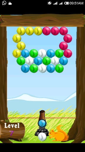group of more than three marbles. Then these marbles will gets cleared. With same approach clear all marbles, also keep in mind about red string on bottom of trunk. If marble touch the red string will loose the level.