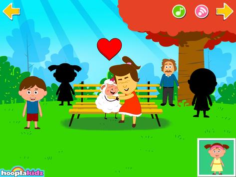 This nursery rhyme game is specifically designed for preschoolers (kids in kindergarten) to encourages interaction with various elements of the rhyme, thus enabling kids to feel like they are a part of their favorite rhyme with the added educational benefit.