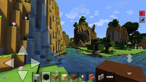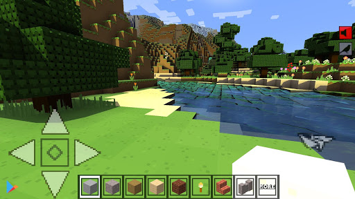 Touch buttons on the left side of the screen are needed to control the character. For a circular view, you need to drag your finger across the screen.To place the block, select it in the interface menu, which is located at the bottom of the screen, and tap in the place where you want to put it.