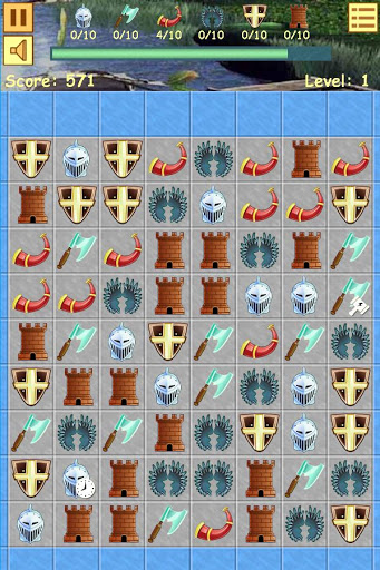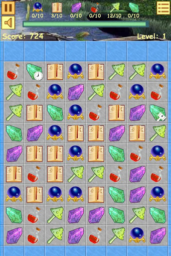 Collect items in the match 3 puzzle. Match them in a line of two and more. Slide columns or rows to move items. Sets of items: - jewels - candy - druids - Egypt - runes - knights - magic