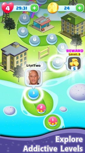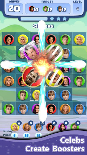 🍭- Clear as many celebrities as possible to reach scores and goals that are set to win the current level and unlock the next addictive level also within a certain number of moves or a time limit!