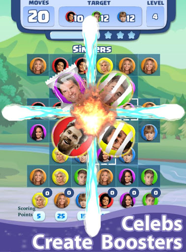🍭- Match three or more same celebrities in a row or column to clear them up from the game board.