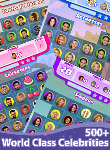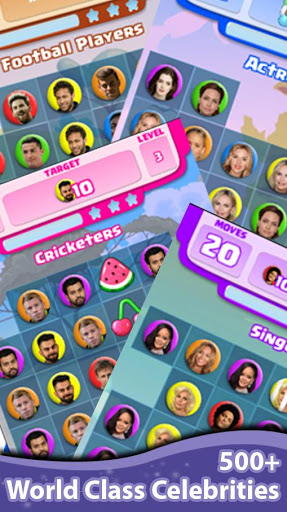 🍭- Explore the different celebrity kingdoms and overcome the challenging puzzles in each level with football players, cricketers, wrestlers, singers, actors, tennis players, richest people in the world and many more.